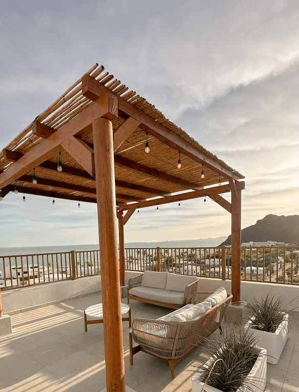Alberca panorámica, camastros, relax pool, firepits, salas lounge, elevador, estacionamiento, mantenimiento y una amenidad que es invaluable: vista al mar.